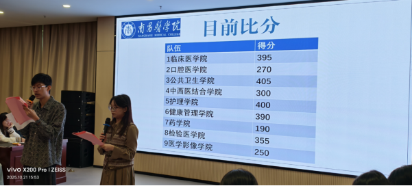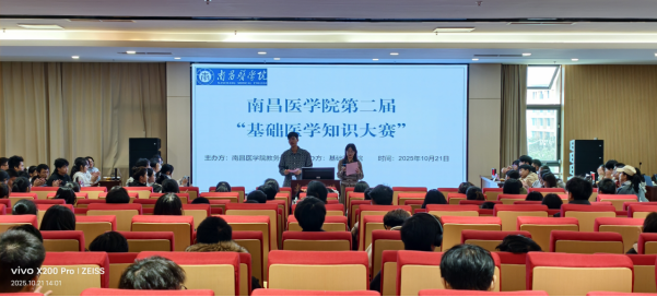 10月21日下午,我校第二届基础医学知识大赛在学生活动中心顺利举办。本次大赛由教务处主办、基础医学院承办,旨在深化基础医学教育改革、激发学生学习兴趣,来自全校9个学院的队伍同台竞技,展现专业素养。
