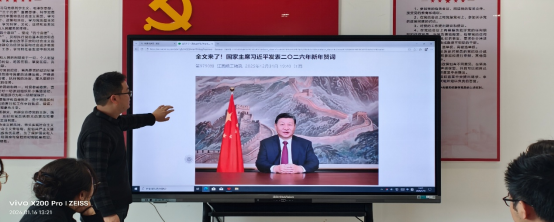 支部集中学习习近平总书记在中共中央政治局民主生活会上的重要讲话精神,同时,深入学习中央经济工作会议精神,明确要在医学基础研究、康养服务对接等方面主动作为,践行“定了就要落实”的执行力要求。此外,通过原文领学方式学习习近平主席二〇二六年新年贺词,党员结合岗位分享感悟,凝聚奋进共识。