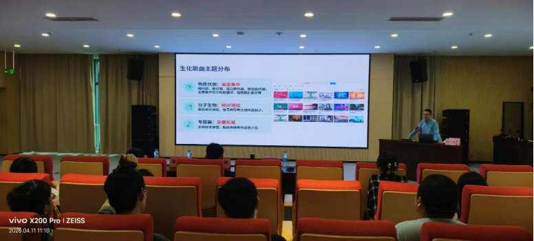 南昌医学院基础医学院副院长王旺博士以《以赛促教:生化歌曲比赛赋能生物化学教学的实践与思考》为题,分享了基础医学院在生物化学教学改革中的创新实践。他介绍了通过生化歌曲创作比赛激发学生学习兴趣、深化知识理解的具体做法,总结了“趣味化教学+学科竞赛”融合育人的成效与经验,为医学基础课程教学模式创新提供了可借鉴的实践样本。