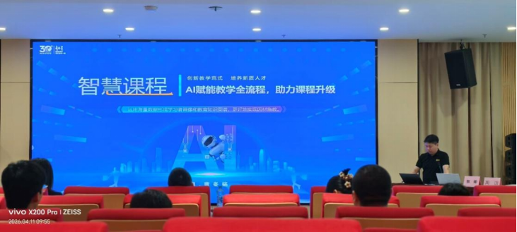 超星集团江西服务总监、iSlide官方认证讲师曹冬铭,则聚焦数字化教学转型,带来《AI赋能课程建设与教学运行》专题分享。他结合多年课程建设与智慧教学培训经验,系统阐述了AI技术在课程设计、资源开发、教学运行等环节的应用策略,展示了人工智能为高校教学创新带来的全新可能,为推动学校智慧课堂建设与优质课程资源开发提供了重要参考。