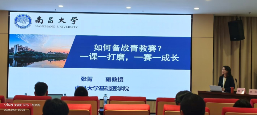 活动现场,三位行业内教学与科研领域的专家学者依次登台,围绕不同主题展开深度分享。南昌大学张菁副教授以《如何备战青教赛?——一课一打磨,一赛一成长》为题,结合自身斩获国家级、省级教学竞赛奖项的宝贵经历,从竞赛备赛技巧、课程打磨路径、教学能力提升等方面进行详细拆解,分享了“以赛促建、以赛促优”的实践经验,为教师参与教学竞赛提供了清晰思路与实操指南。